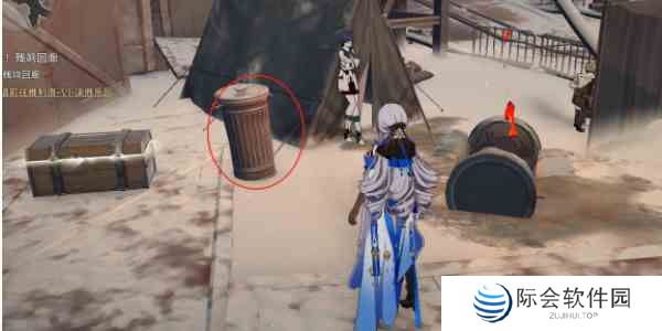 2、我们来到下图所示的位置后可以看到这里有个*桶,我们与*桶进行互动选择”整个搬走“后即可达成成就【冰级淋】。