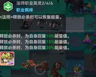 法师羁绊:释放必杀时,为自身回复10%能量值。