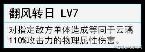 云璃是「五星物理毁灭拉仇恨反击输出」角色,可以看作【复仇反击】的设定,吸引敌人攻击云璃,然后受到攻击后再做出回击的追加攻击的一个设定。并且有二段大招能量,可以连续使用两次大招造成更大的追加攻击伤害,是个非常强力的输出。
