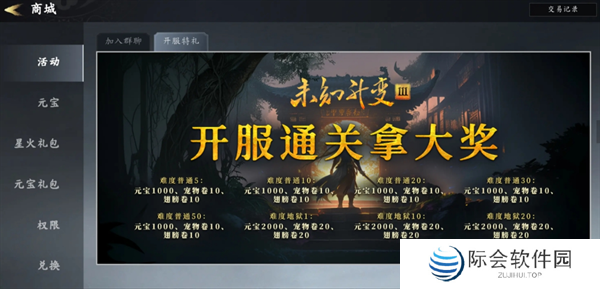4、这些弄完去做开服特礼,阵容推荐青皮七仙女诸葛亮嫦娥东方汐,主动技能带心动被动技能带个赤焰灼热,打不过了问下群里有没有人带无尽,打完去抽异宝,没人带就自己玩,通关普通50应该没压力