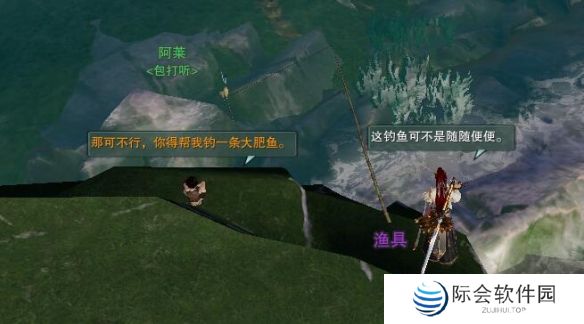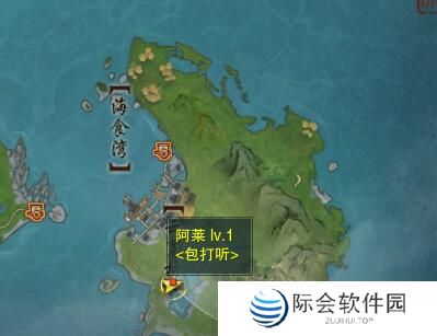2、前往【海食湾-云宽村】找npc【阿莱】然后互动渔具;