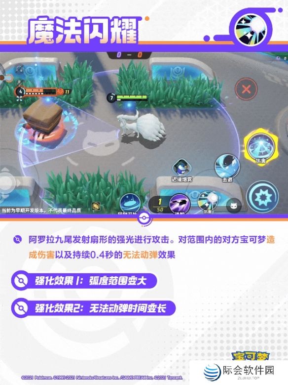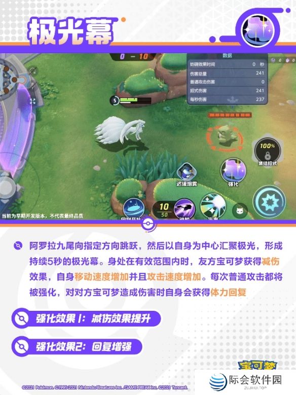阿罗拉九尾向指定方向跳跃,然后以自身为中心汇聚极光,形成持续5秒的极光幕。