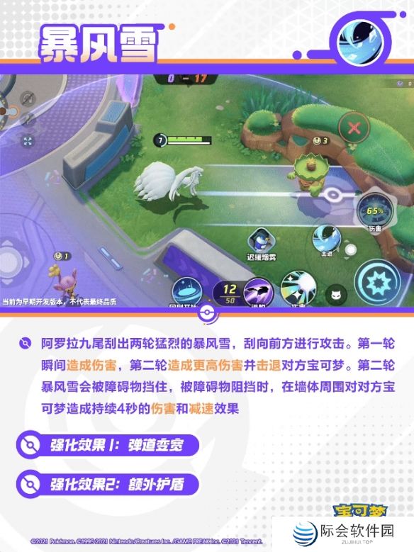 阿罗拉九尾呼唤风雪朝指定地点进行攻击,风雪接触到对方宝可梦时对范围内造成伤害。