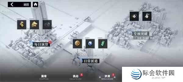 另外推图推不动时候就去作战里推性能考级,那个推也是给很多资源,那个推不动了再升级卡试试推图。我刚开始也经常找不到,容易把这个忽略。