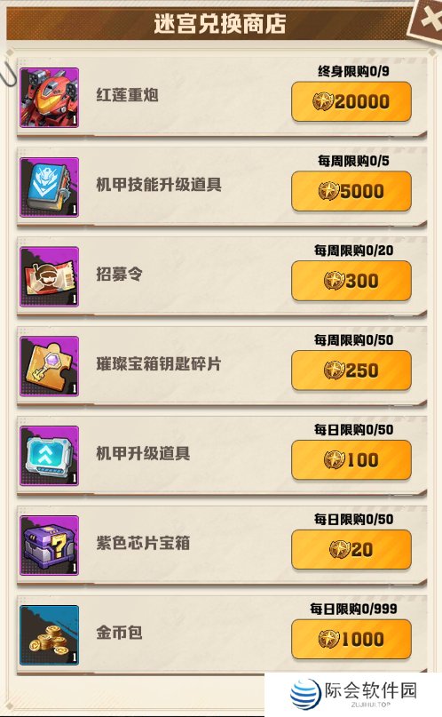 在雾境迷宫商店中:先解锁机甲红莲重炮,然后再优先兑换:金币、璀璨钥匙宝箱碎片、招募令、最后可以考虑每天存一点升级机甲!