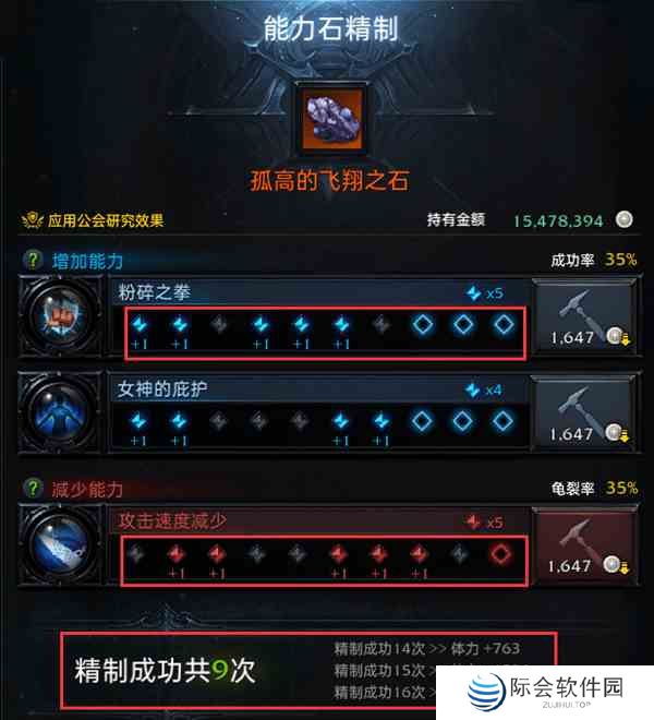 在每一个能力石第一次加工的时候成功率是75%,点击锤子图标消耗金币就能进行加工。