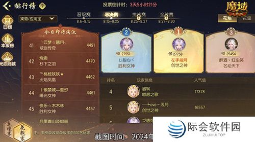 24顶级时装东阳歌·仙缘、24原色缰绳·御日游云,以上玩家基本稳拿这些奖励。然而,这还只是开始!若能再接再厉,冲进全球赛,选手们将有机会获高级缰绳·御日巡天、专属技能烈日权柄、24年花魁赛足迹·步履生辉、24小翅膀“灿翼逐光”和传说宝石自选箱。而一旦进入前三,更能获得京东卡奖励,最高金额高达万元!