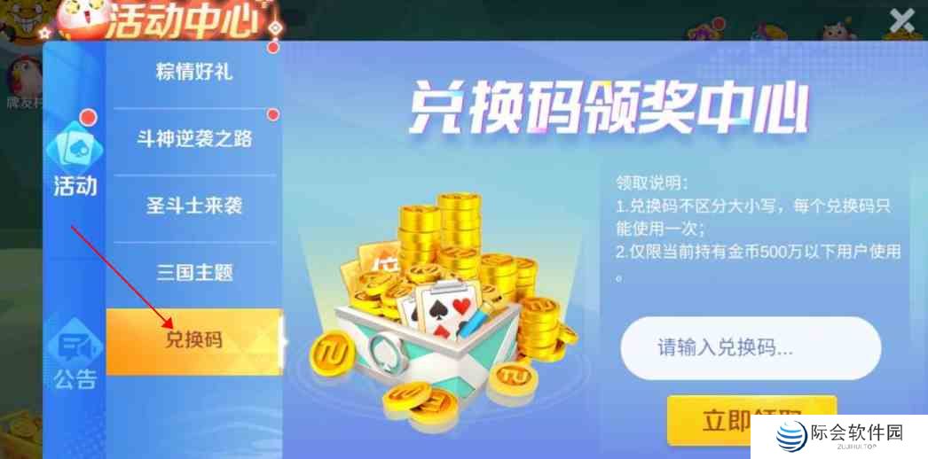 2、在活动中心点击“兑换码”
