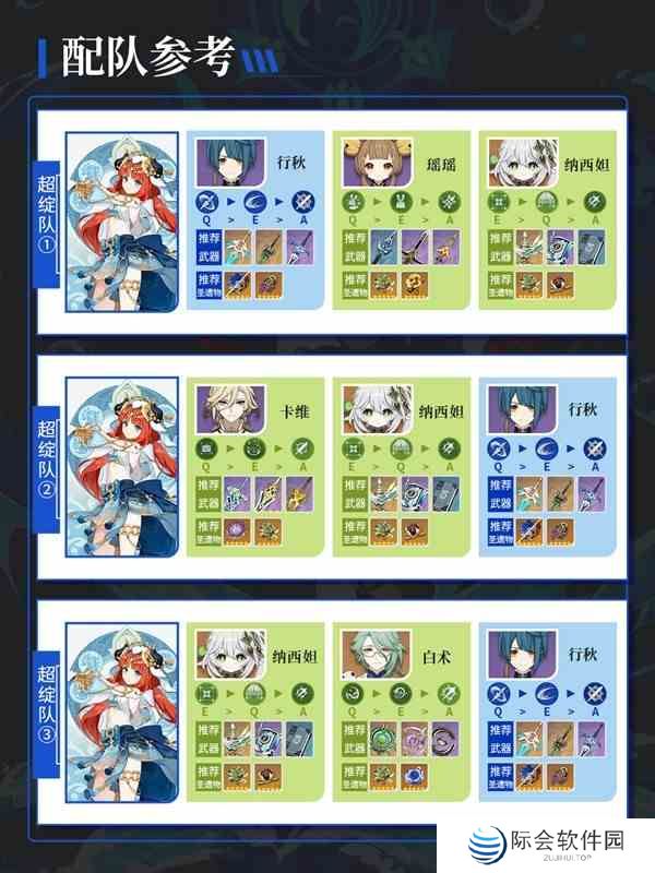 ①超绽队1:妮露+行秋+瑶瑶+纳西妲