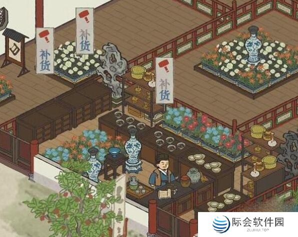 1、首先,我们可以在越州商行内定制货架,一旦陈列妥当,即可开始销售商品。