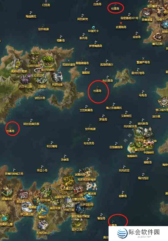 一般来说,杜基岛都会在以下这些位置刷新,大家可以保存图片,在需要的时候使用图片确认岛的位置。