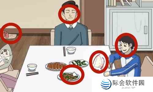 6、在第三个场景中有五处可疑点,分别是堆高的米饭、我的表情、饭菜里的纸条和角落里的老鼠药以及他们闭着的眼睛。