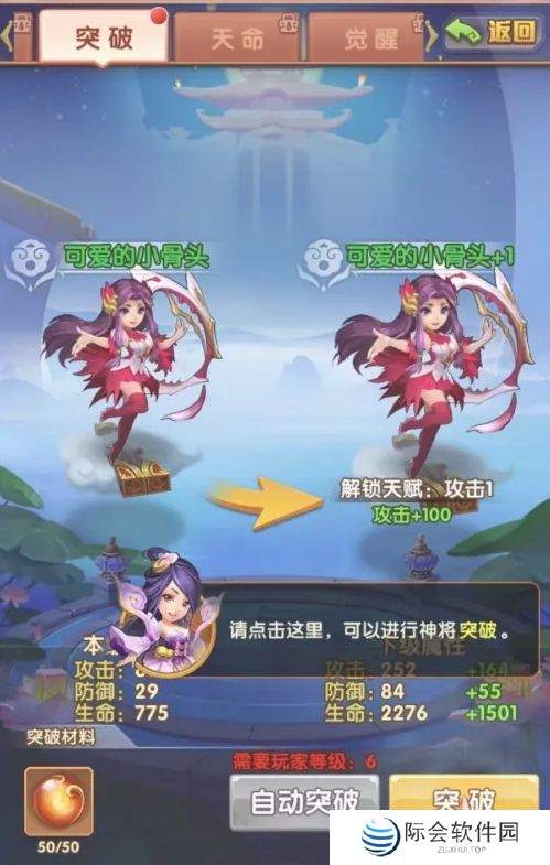 3、在神将突破页面,消耗一定数量突破材料天命丹,然后点击突破。
