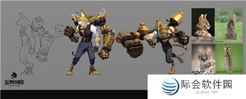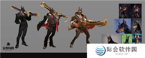 (游戏中的英雄阿什拉、杰西卡和亚当与原型薮猫、帝王蝎和德国笃宾犬对比,处处体现着角色设计的细节)