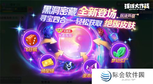 另外,飞行棋、摘星楼、圣衣打造、梦幻工厂寻宝玩法四合一,黑洞密藏全新登场,玩法升级之后,获取绝版皮肤更加轻松,活动期间登录游戏即可免费获取10连抽!抓紧时机获取传说关键词「水滴泡泡」。
