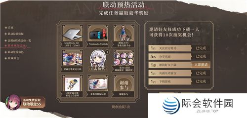 游戏之外,《炽焰天穹》还诚意满满的为玩家准备了联动抽奖活动,玩家通过下载游戏及完成相关页面任务获取抽奖次数,就有几率抽取Macbook、Switch、《炽焰天穹》游戏手办/周边等超多豪华大奖!
