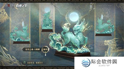 宿伞之魂-玉麒麟是一只通体碧绿,踩踏祥云而来的玉麒麟,祥云如碧波,托着麒麟翔于高空,其脑后还有一个圆光,正是麒麟作为上古神兽的法相代表;麒麟整体散发着金色光芒,有着随时蓄势待发的形态。