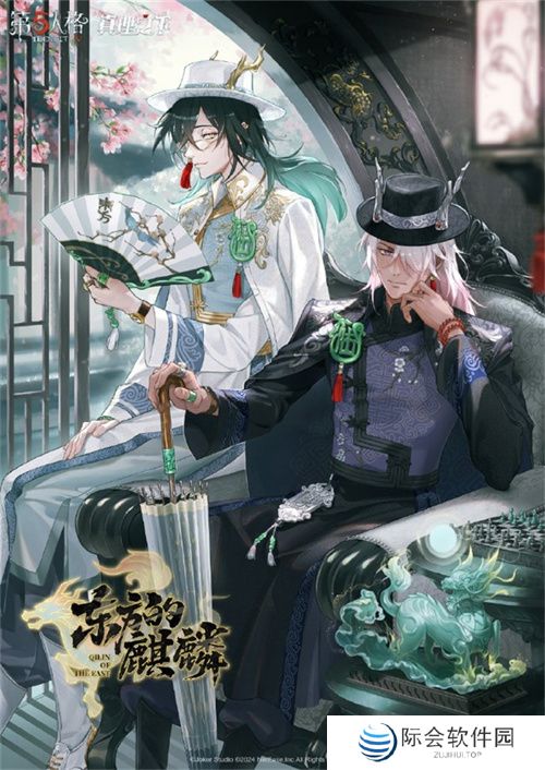 时装海报中,宿伞之魂-麒麟商人身着中式古装,头戴礼帽,一黑一白比肩而坐,脚下的玉麒麟模样精致;曦阳照入房间,房中升起白烟,二人表情浮起一丝耐人寻味。阴谋?危机?且都放马来吧!