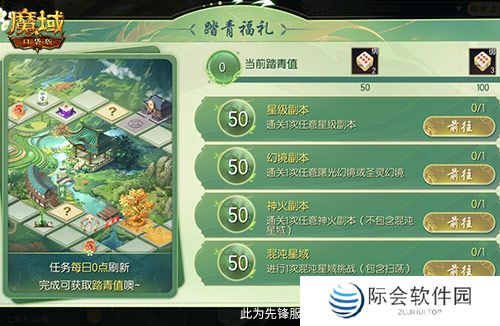活动中还有“春迹灵章”等着玩家们收集。使用后,这些灵章将转化为“春迹值”并累积在“春日踏青游”面板中。玩家可以利用这些春迹值,在“春迹商店”中兑换各种各样的礼物。