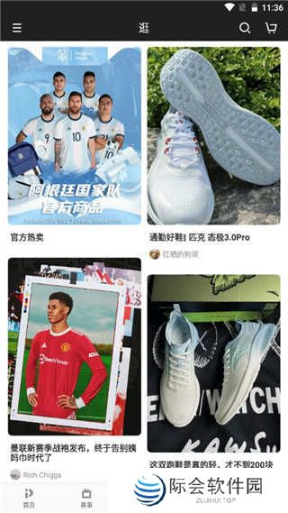 3、登录完成后,打开“逛”这个界面,里面有很多的商品信息,还有一些体育健身分享,可以关注很多的新鲜事情哦!