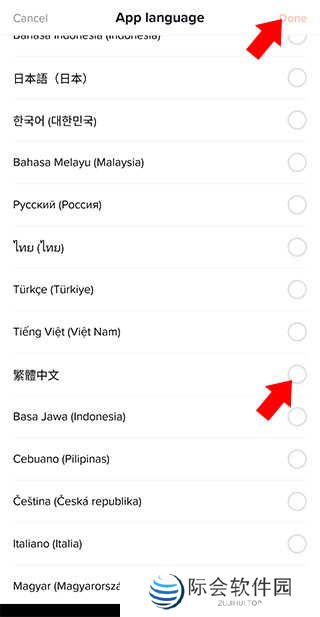 4、在打开的语言选择界面将语言切换为繁体中文,之后点击右上角Done选项即可