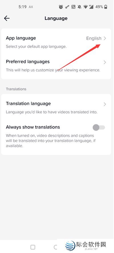 4、里面会有个“app language”。