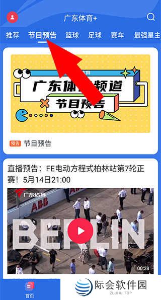 1、下载安装后打开软件,可以滑动或点击上方标签也切换资讯类型,切换到节目预告界面