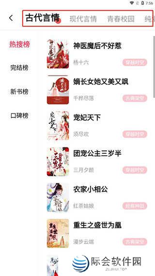 3、在排行榜中也可以看到各类小说的热搜榜、完结榜、新书榜和口碑榜;