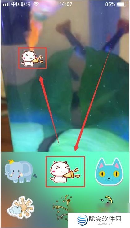 点击第二个图标“笑脸”,可以选择满意的表情添加到视频里面。