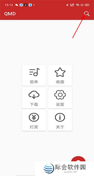 qmd音乐使用教程1、在本站下载并安装QMD音乐app后打开,进入QMD音乐app后点击右上方的搜索图标;